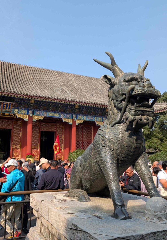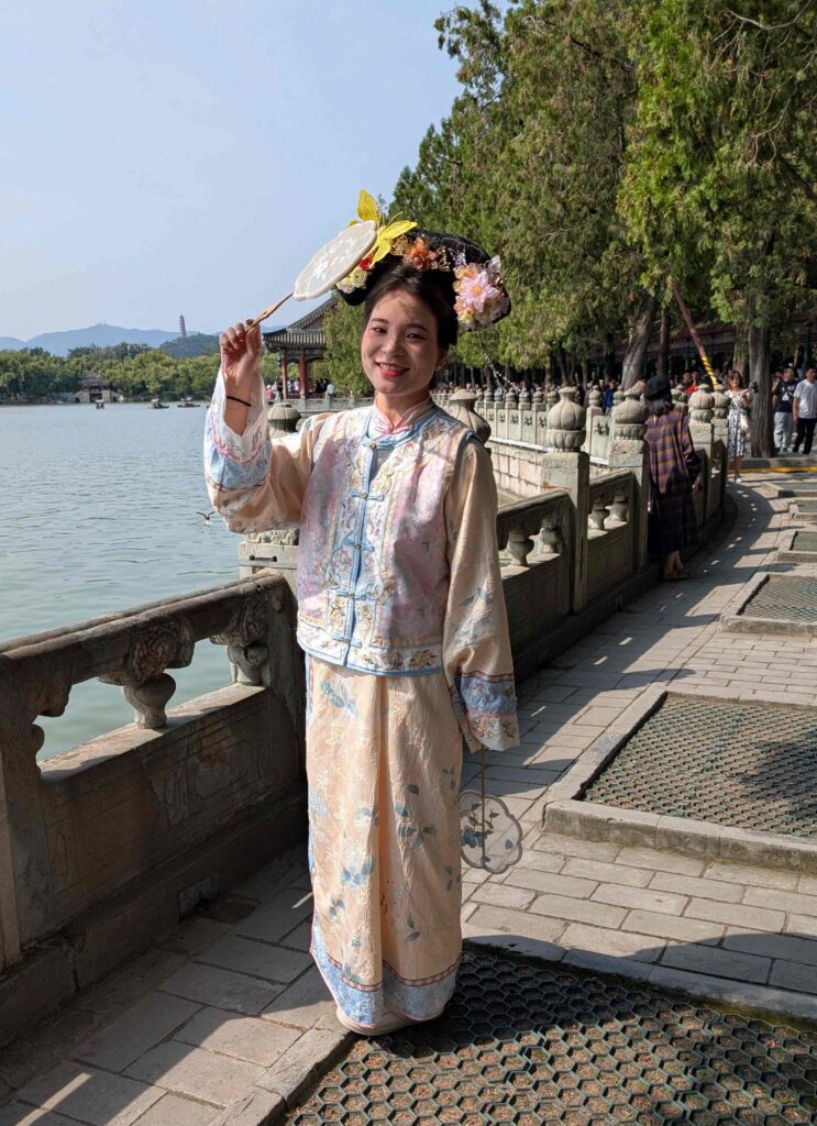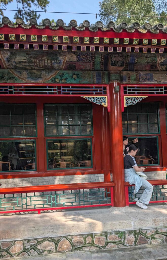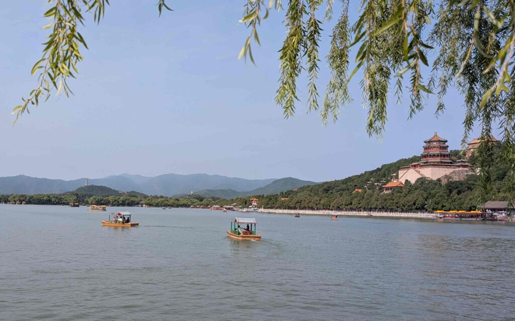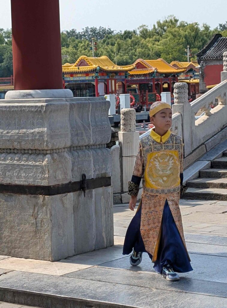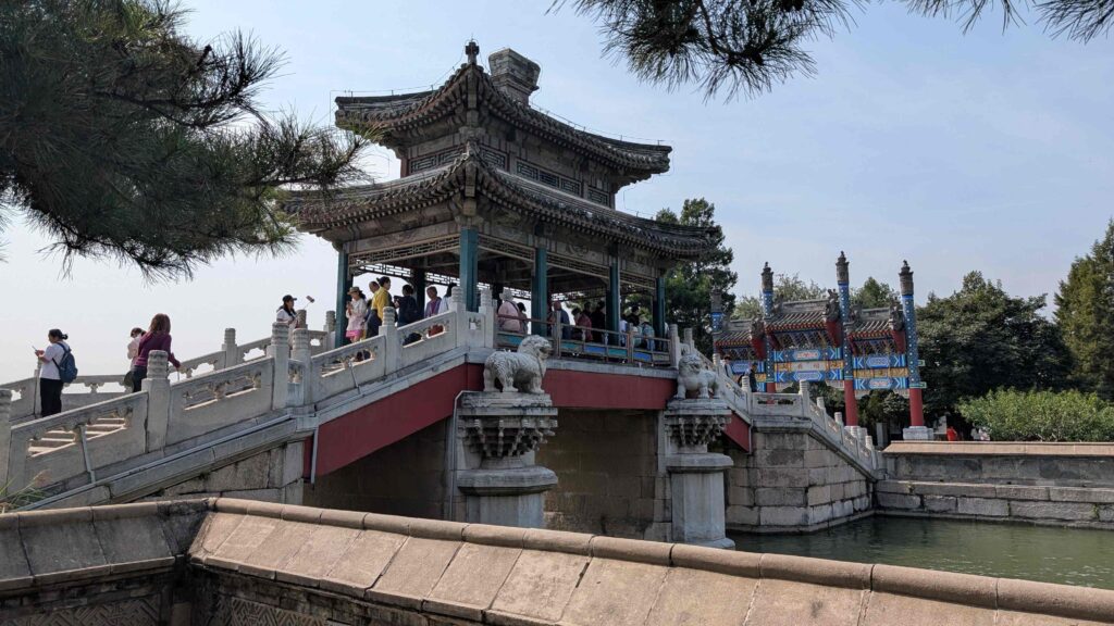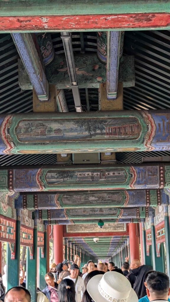 Heute besuchten wir den Sommerpalast der chinesischen Kaiser. Er befindet sich in einer großen Gartenanlage mit einem See und einem 728 m langen überdachten Wandelgang aus Holz.