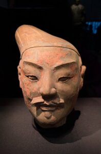 Ursprünglich waren alle Figuren bemalt, die Farbe hat sich nach der Ausgrabung aber leider schnell zersetzt.